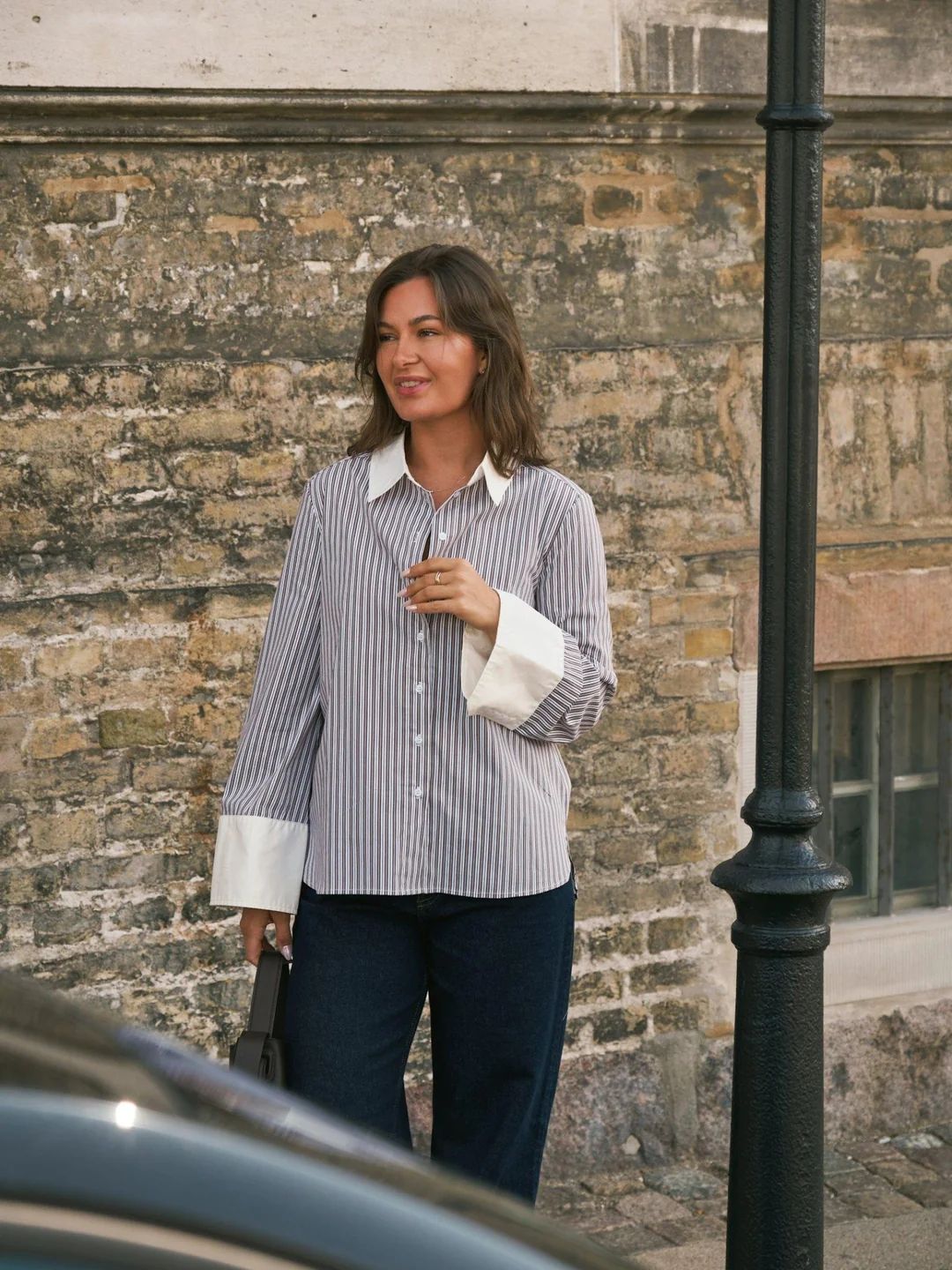 NEO NOIR Diana Crepe Stripe Blouse Brown