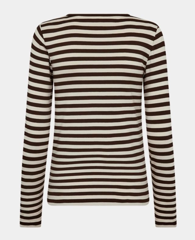 Langermet T-skjorte fra Freequent i et mykt materiale med kontrasterende striper. I tillegg er T-skjorten enkel i designet med rund hals med ribbekant og en smal passform.