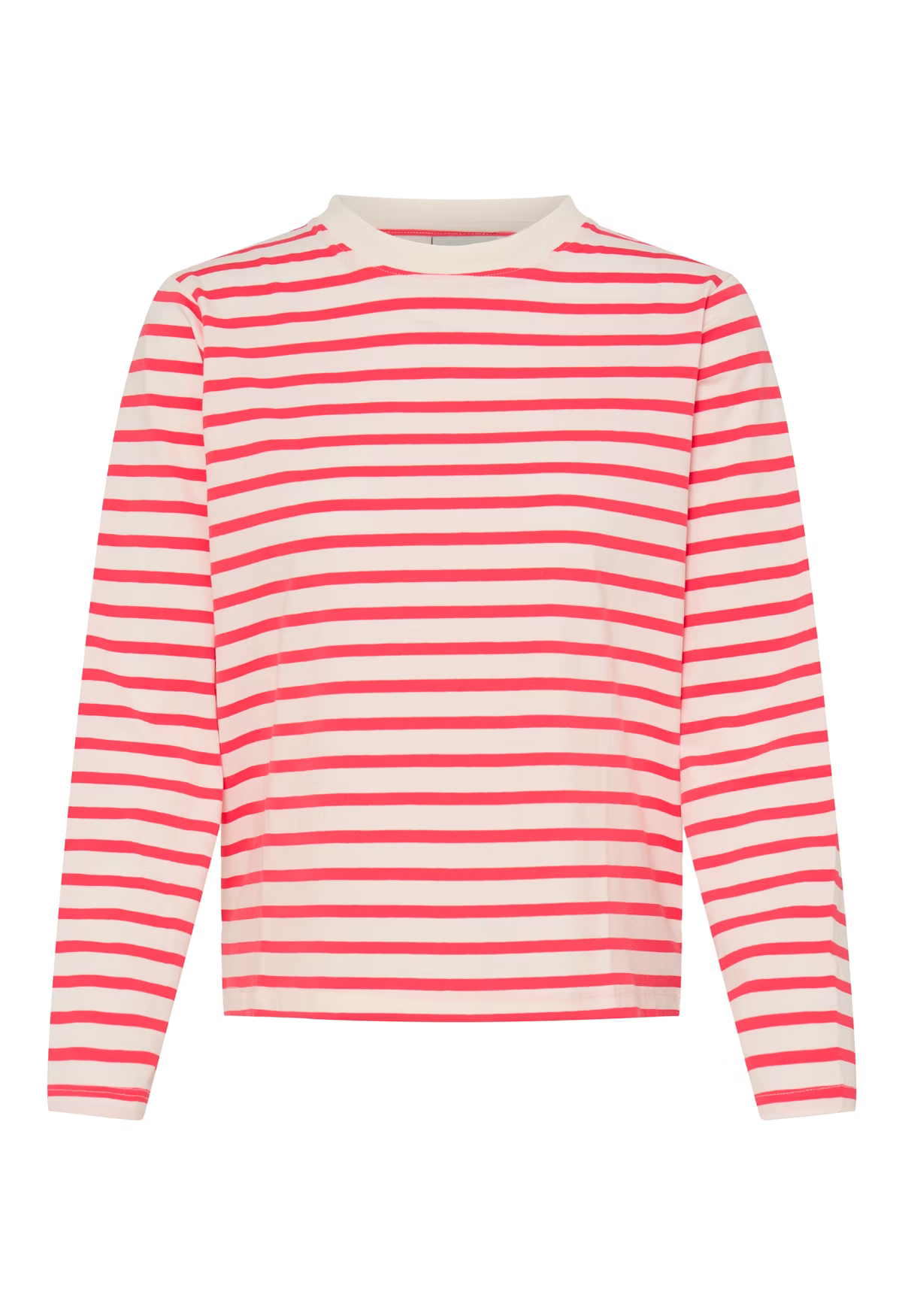 Stripete langermet topp med rett passform og rund hals med kontrastkant. Horisontale striper gir en nedtonet, stilig effekt.