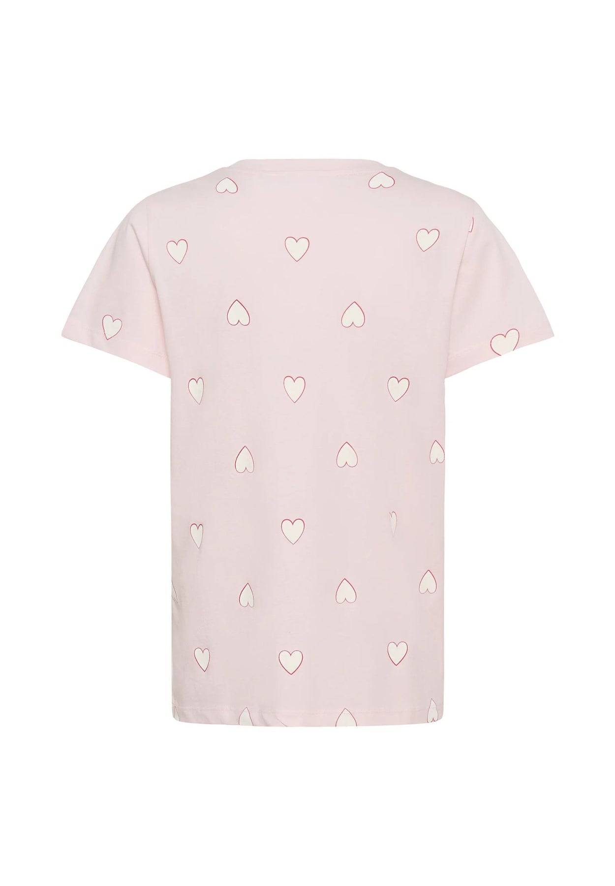 Lys rosa t-skjorte med hvite hjerter fra Saint Tropez. T-skjorten har rund hals og avslappet passform.