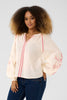 Bluse med avslappet passform og broderte detaljer langs hals og ermer. V-hals og lange ermer med elastikk gir komfort og stil til hverdag.
