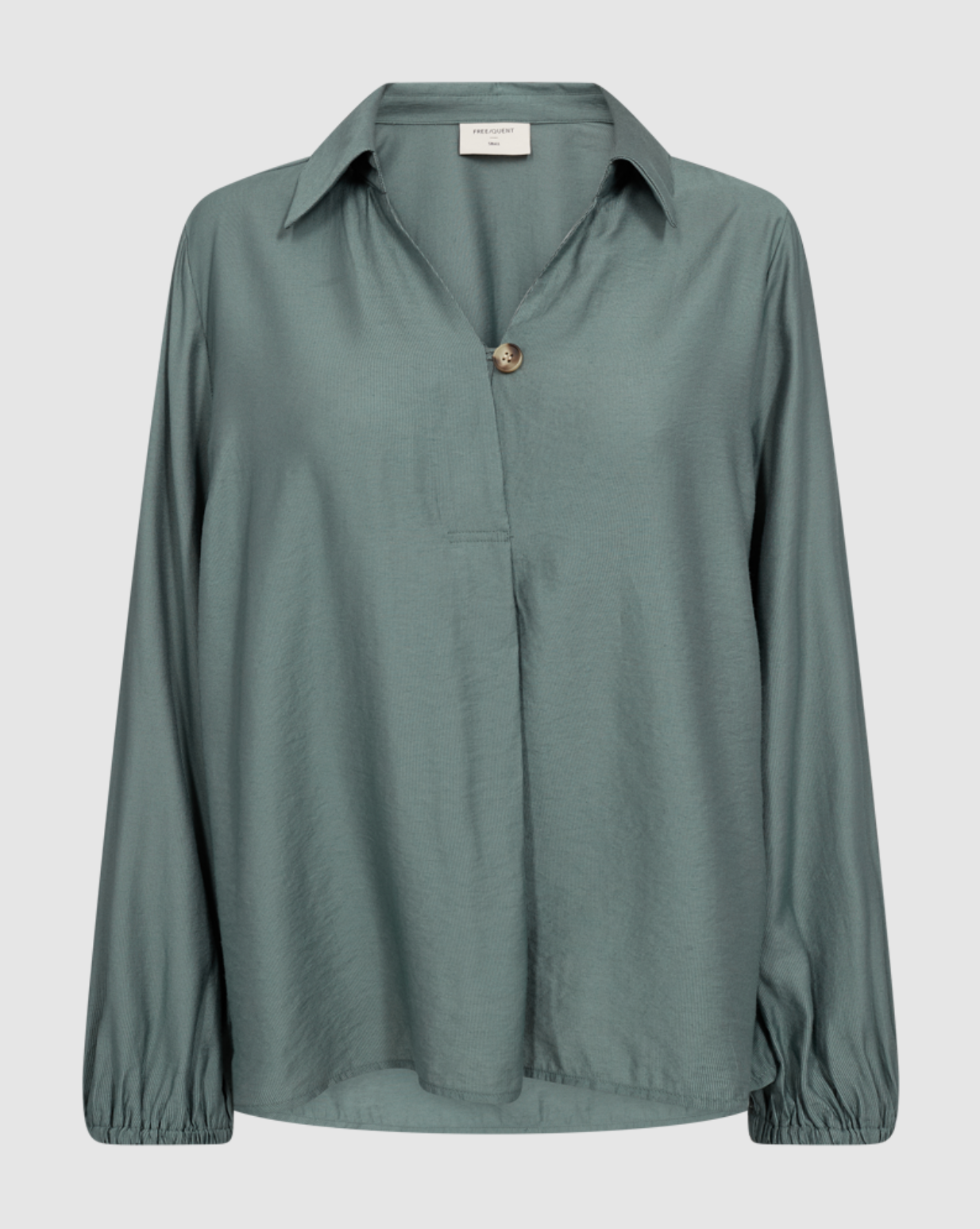 Fin bluse fra Freequent. Blusen har krage, lange ermer og v-hals.