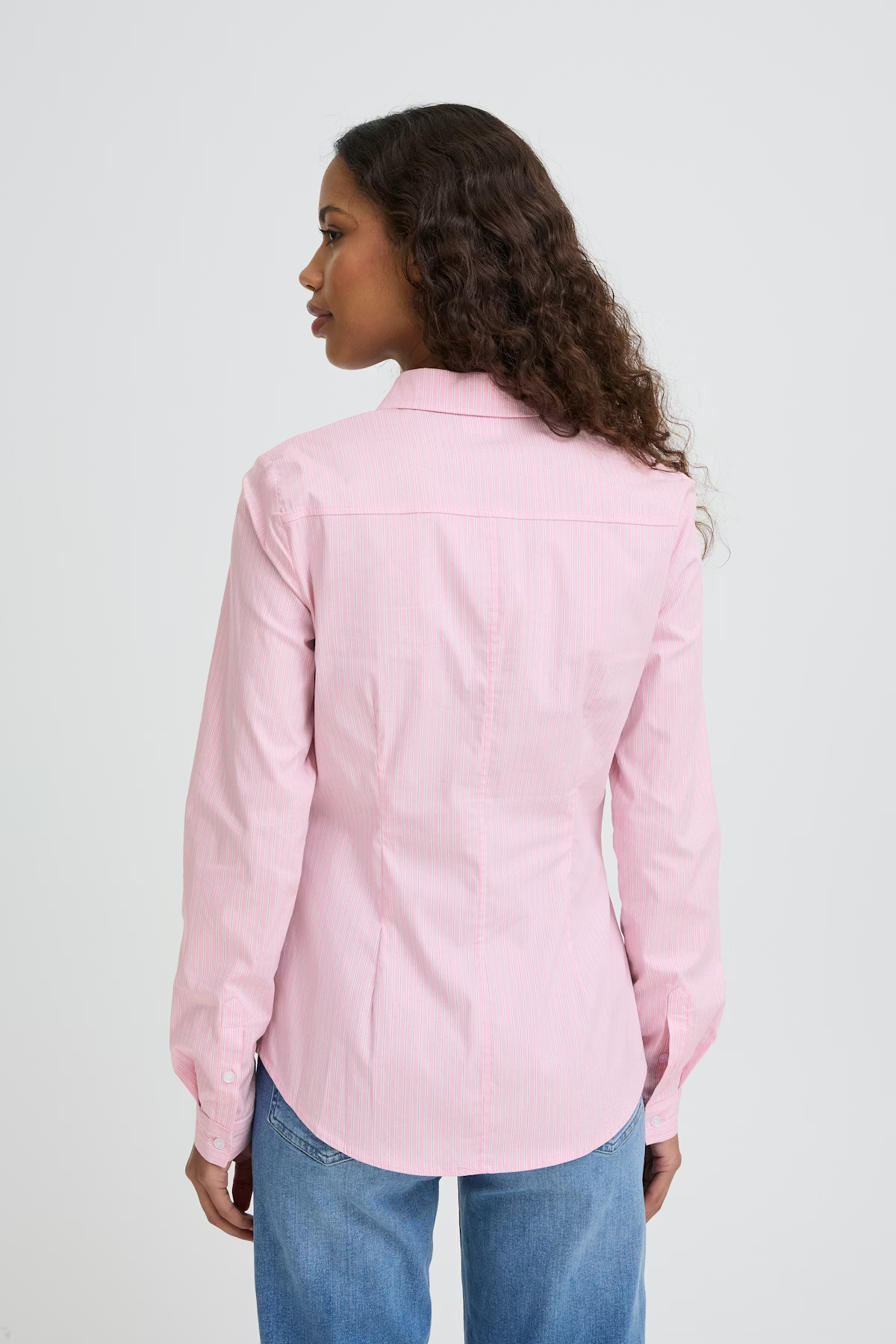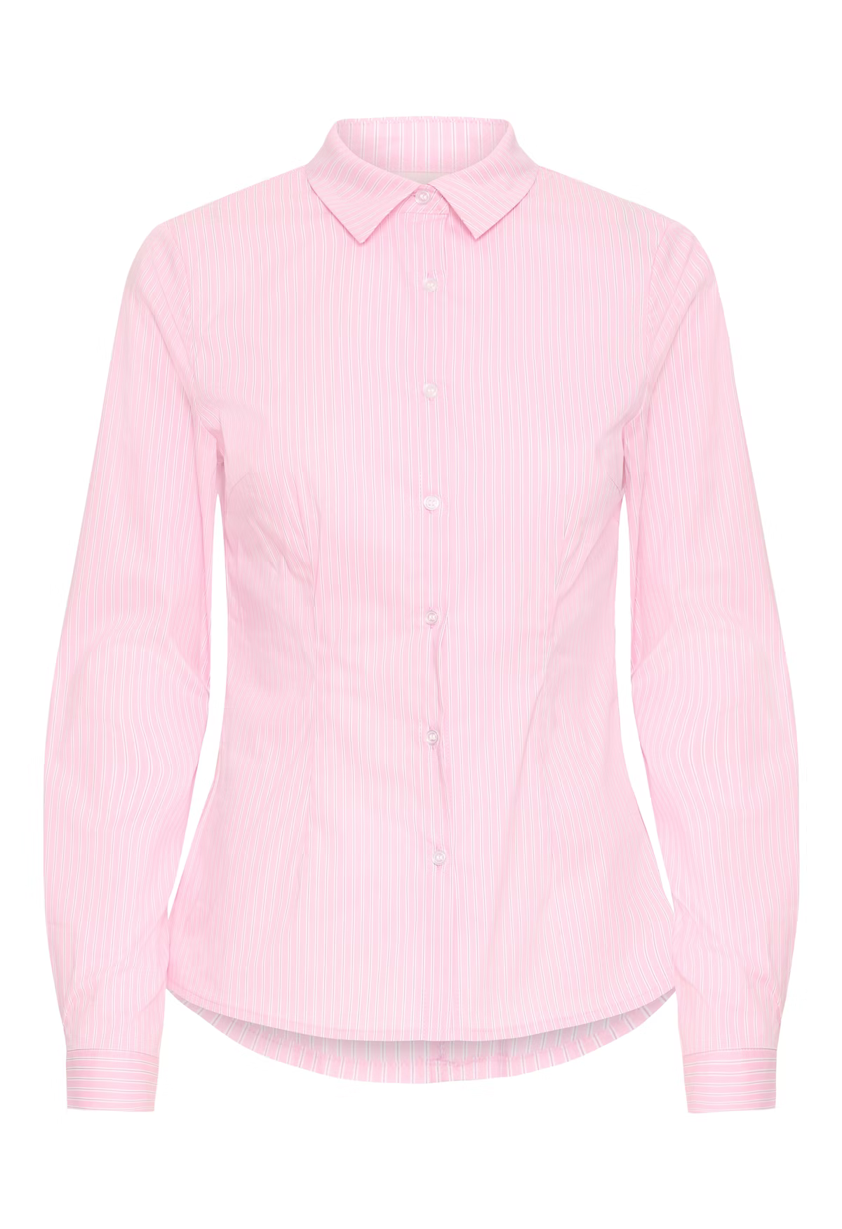 Stripete skjorte med innsvinget passform, klassisk krage, lange ermer med mansjetter og buet kant. Knappelukking og striper gir et sofistikert uttrykk.