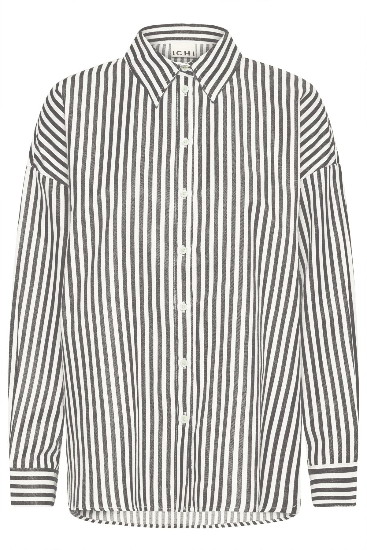 Stripete skjorte fra Ichi. Skjorten har knapper, lange ermer og krage.
