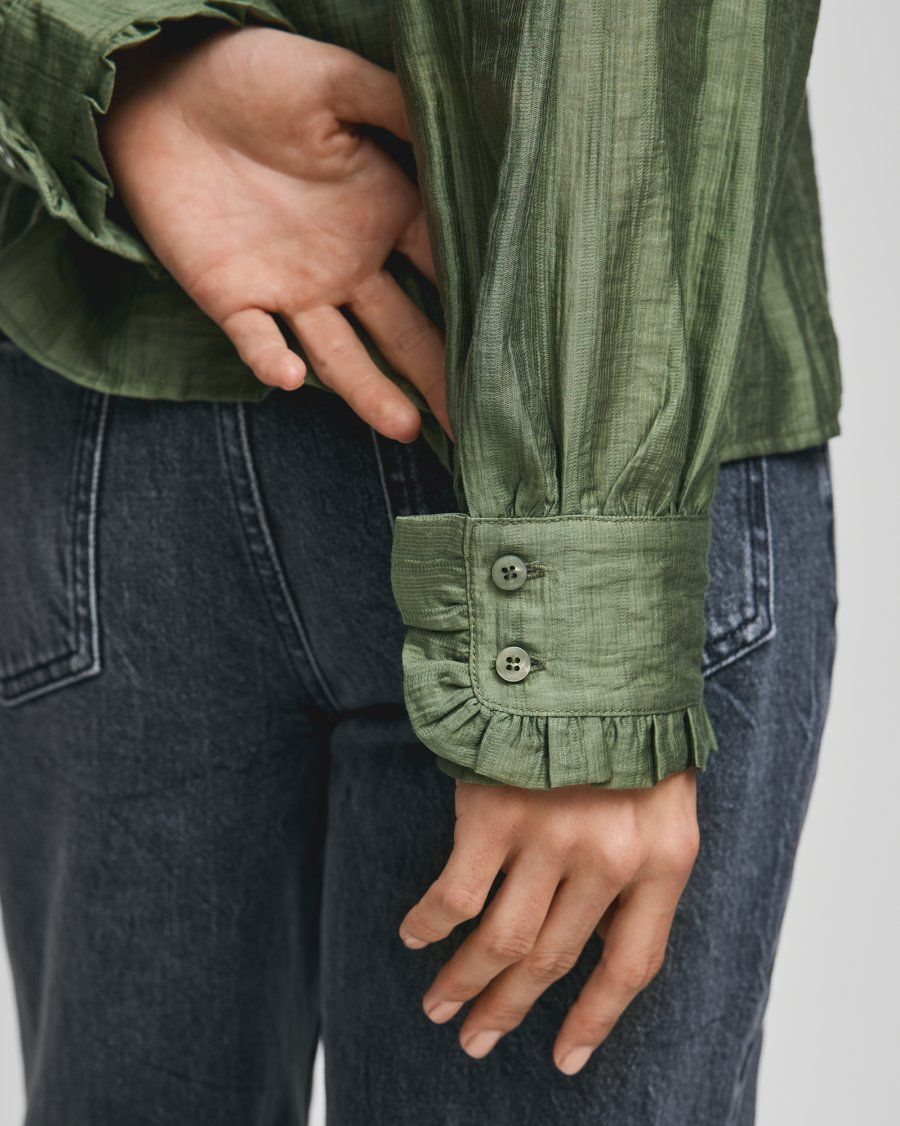 MSCHFemine-skjorten har klassiske lange ermer og en raffinert krage, som bidrar til den tidløse estetikken. Skjortens allsidige design gjør den enkel å kombinere med forskjellige underdeler, fra skreddersydde bukser til avslappede jeans, noe som gir uanstrengte stylingalternativer. Enten den brukes gjemt inn for et polert utseende eller ikke gjemt inn for en mer avslappet stemning, er denne skjorten et basisplagg som forbedrer enhver garderobe. Som et nytt tilskudd til kolleksjonen er MSCHFemine-skjorten ikke bare et plagg; det er et statement-plagg som legemliggjør den moderne motens etos.