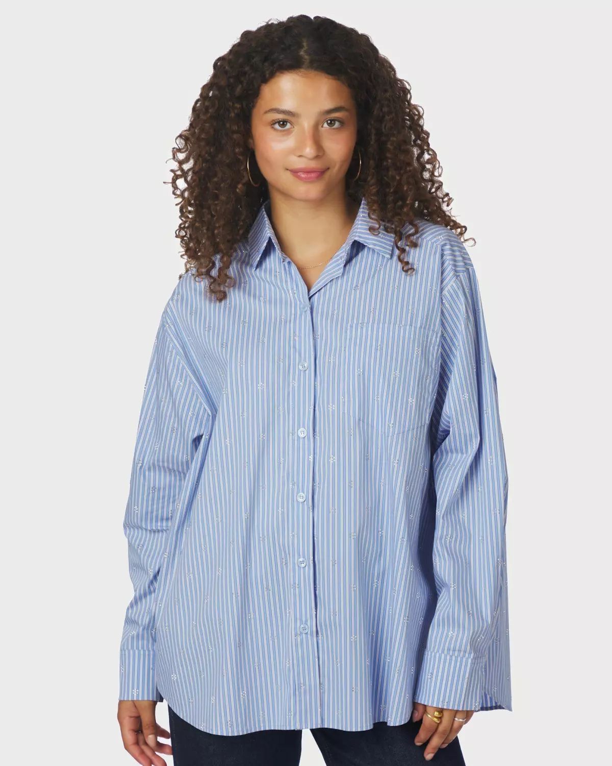 Oversized skjorte fra Neo Noir. Blusen har glittersteiner og striper.
