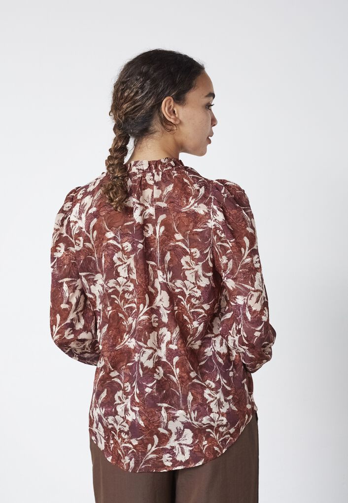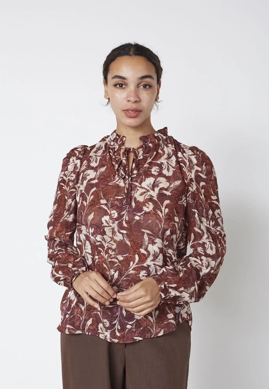 Lekker blomster bluse med lange ermer og krage i halsen.
