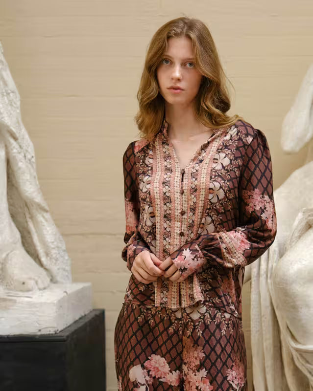 NEO NOIR Fleur Drapy Satin Blouse Dark Brown