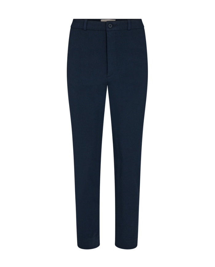 Bukser fra Freequent i et mykt og elastisk materiale. Buksene har en enkel silhuett med smal passform, knapp- og glidelåslukking, høy midje, sidelommer og splitt i leggens ankel-lengde.