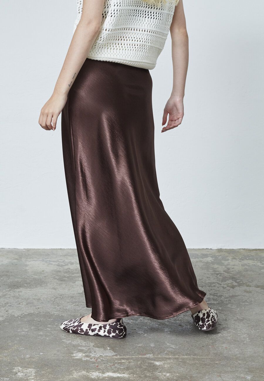 N.GEWO-SK4 er et midi-skjørt i sateng med et flatterende A-linjesnitt som elegant fremhever figuren.