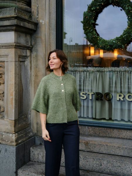 NEO NOIR Benuta Fluffy Knit Cardigan Dusty Green