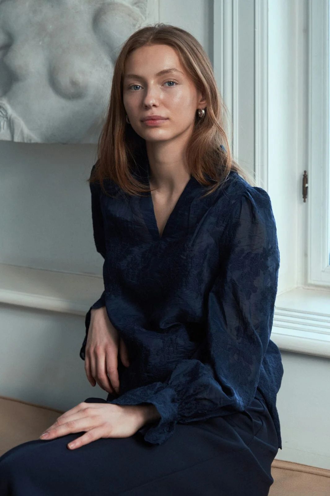 NEO NOIR Amara Big Embroidery Blouse Navy