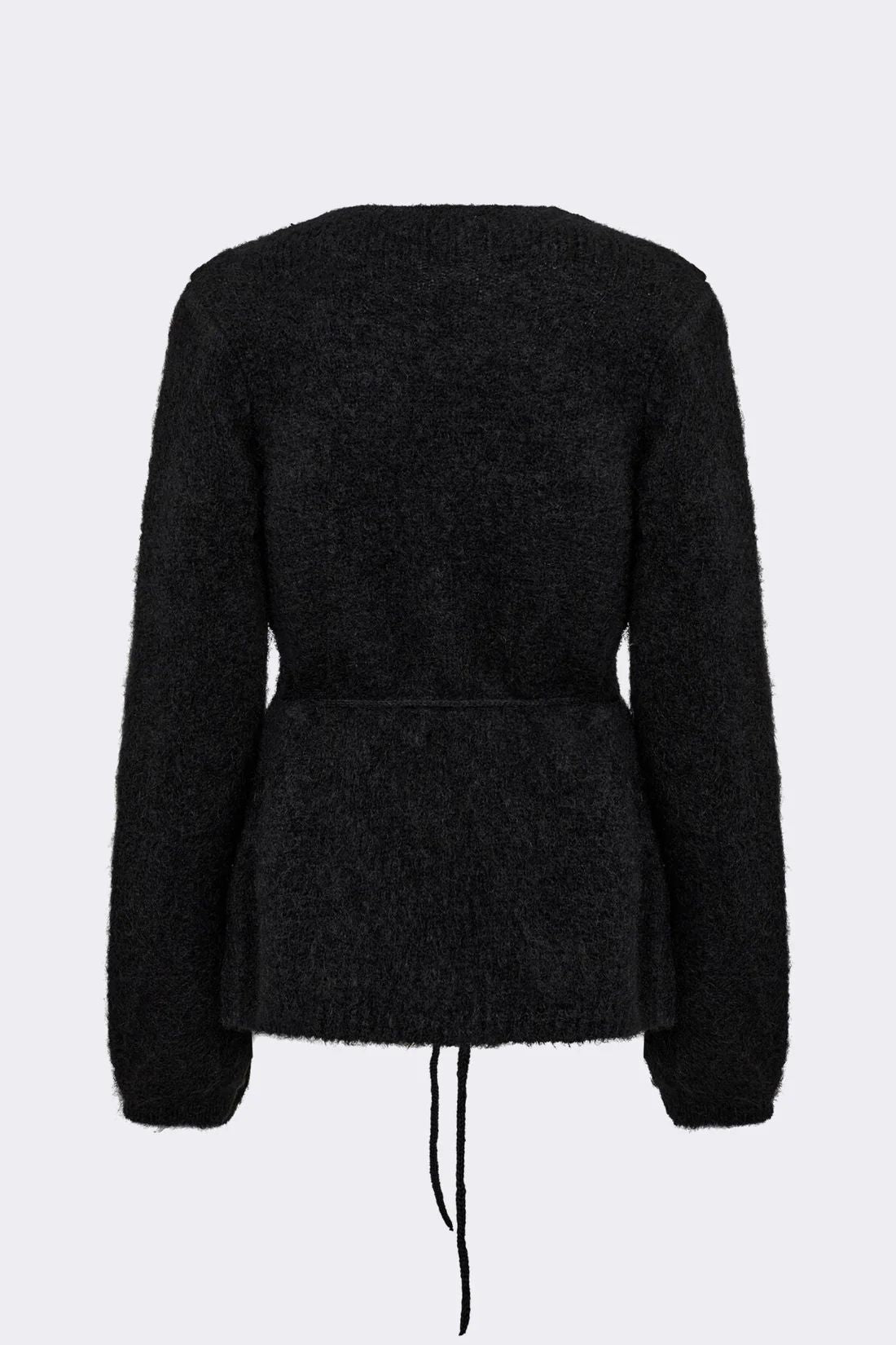LR-NOREEN 7 er en cardigan laget av 53 % mohair, 45 % polyamid og 2 % elastan. Denne elegante cardiganen har en klassisk V-hals, knytebånd i midjen og lange ermer med myk tekstur. Kombiner den med skreddersydde bukser for et kult og sofistikert utseende.