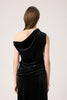 Asymmetrisk topp i sort velur med draperte detaljer og én bar skulder. Den myke kvaliteten og elegante fasongen gjør den perfekt til kveldsbruk eller fest.