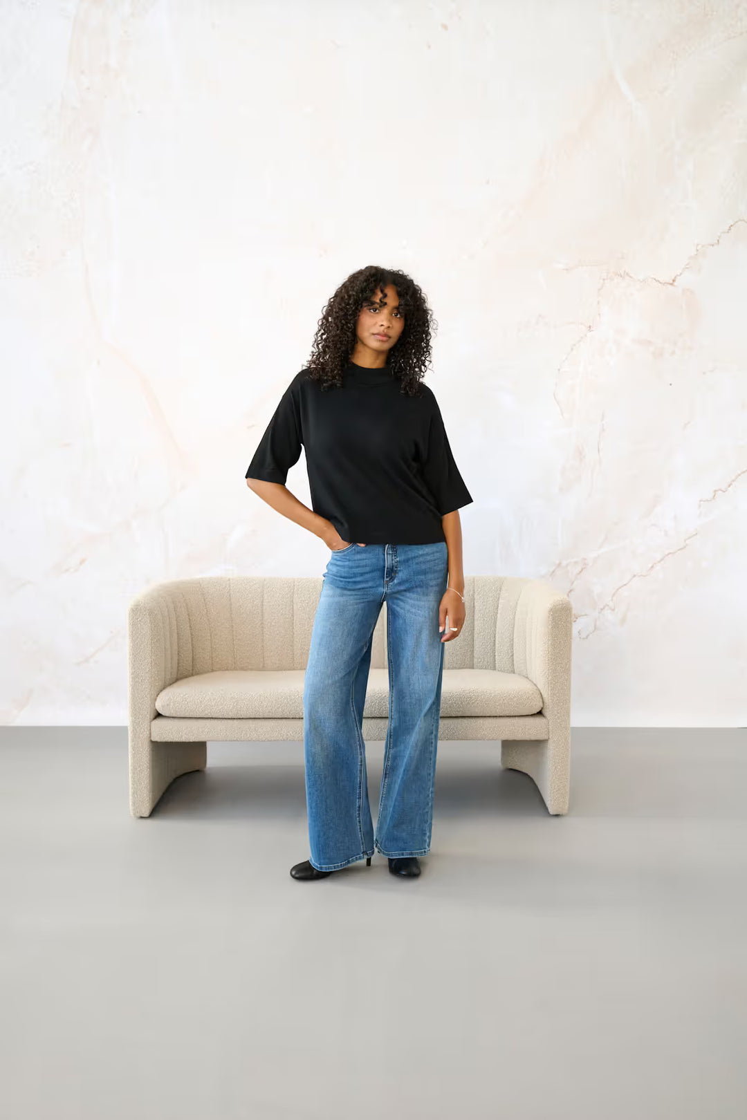 KAFFE KAlizza Boatneck Solid Pullover Deep Black